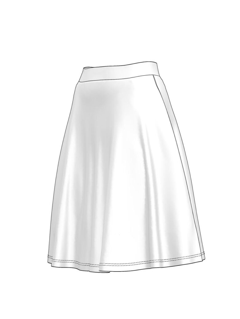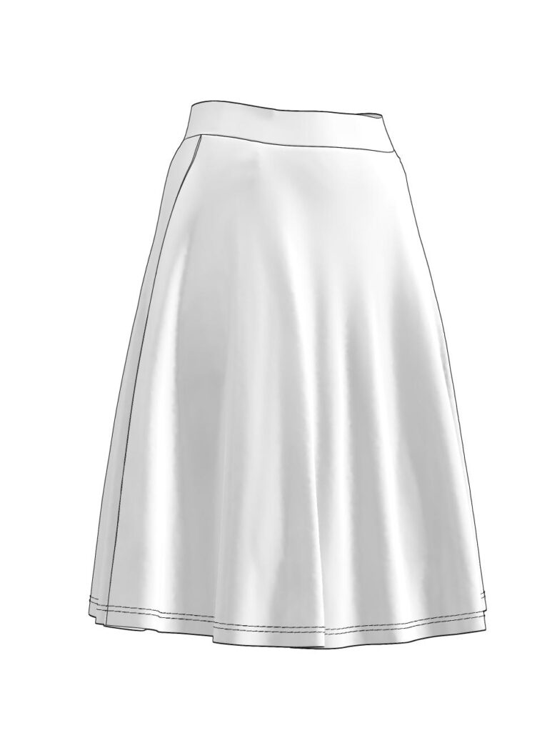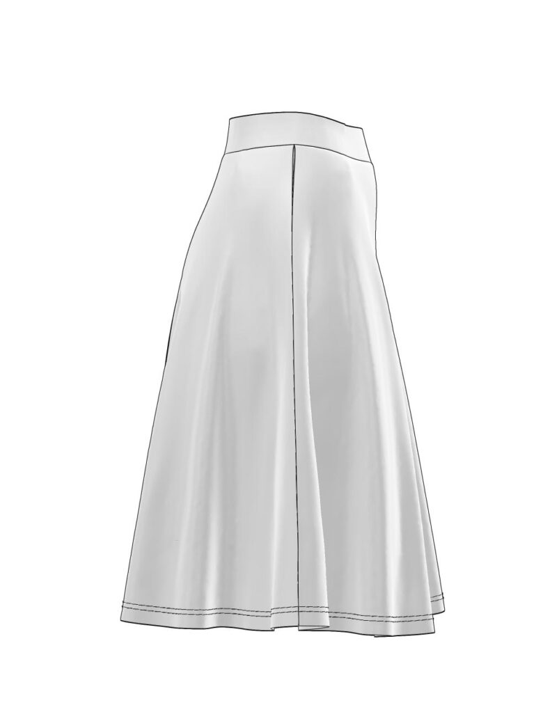 今回は、Adobe Stockより引用したフレアスカートの写真をリファレンスに、それと同じバランスによる5パーツ構成の工業用パターンを製作しました。